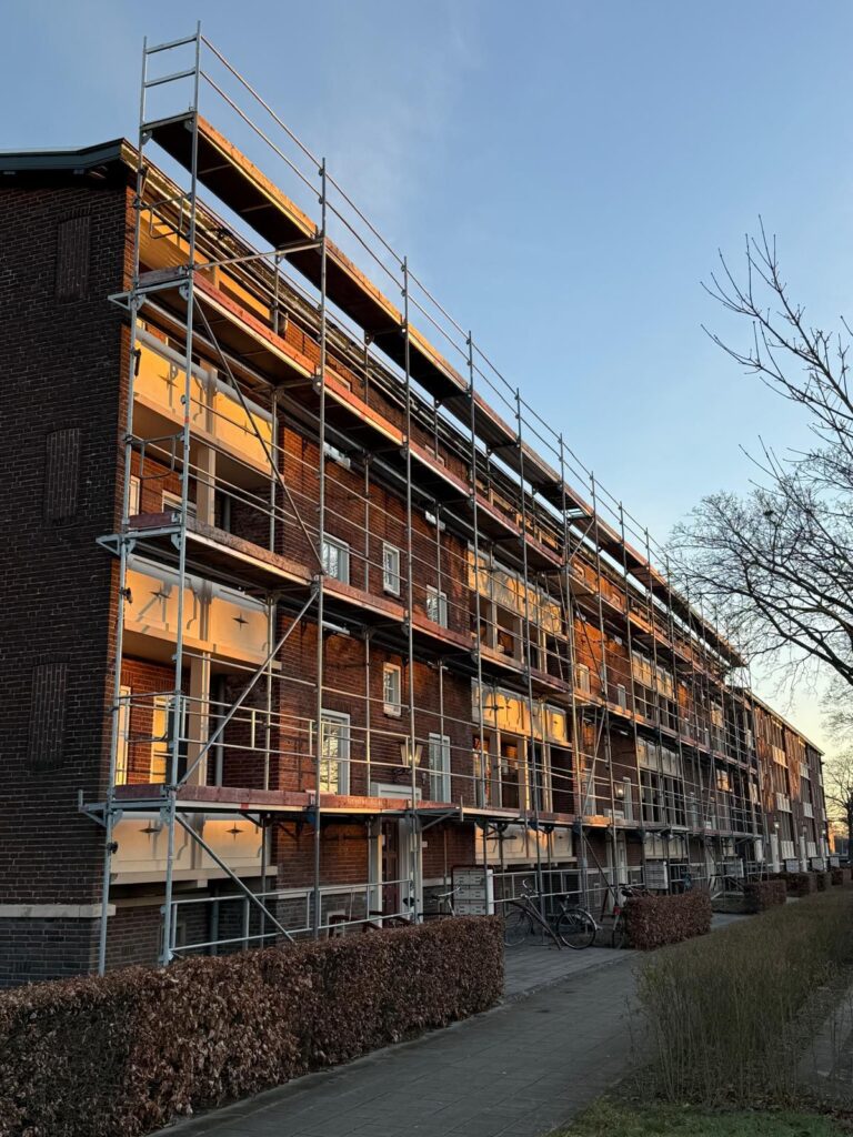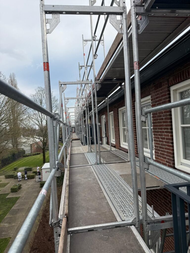 Bij werkzaamheden aan gevels en daken is een stabiele werkplek essentieel. Voor dit project hebben wij een steigeroplossing gerealiseerd die: